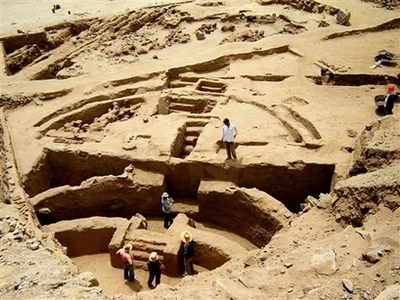 LIMA, Peru - A team of German and Peruvian archaeologists say they have discovered the oldest known monument in Peru: a 5,500-year-old ceremonial plaza near Peru's north-central coast.